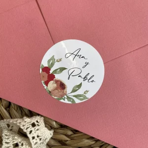 Pegatina detalles boda redonda – FLORES PRIMAVERA