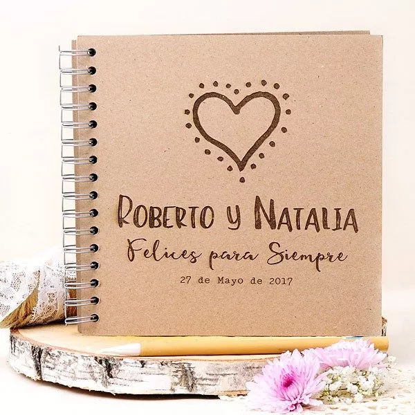 Nuestros libros de firmas personalizados son imprescindibles en el día de vuestra boda para que vuestros invitados se acerquen a expresaros sus mejores deseos. Podréis colocarlo en un bonito corner decorado y con detalles para los invitados que os dejan sus palabras, ¿por qué no? O junto a una cámara Polaroid, para que pongan su foto junto a sus mejores deseos.